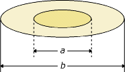 Figure 2 . Section transversale d’une canine à la hauteur du collet : mesure des longueurs entrant dans le calcul du rapport pulpaire a / b.