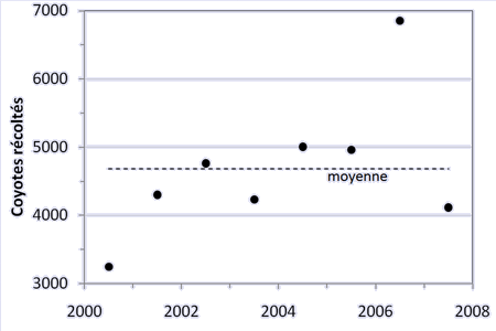 Cependant, la structure d’âge ne fournit qu’un indice de l’état de la population. D’autres projets de recherche devraient être entrepris pour mieux connaître les déplacements, les territoires et les densités des populations de coyotes et ainsi permettre de mieux comprendre les liens entre l’activité humaine et les variations de population animale.