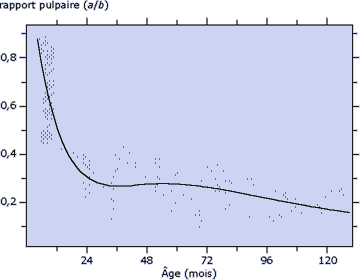 Figure 4. Rapports pulpaires des canines de coyotes en fonction de l’âge (méthode des annuli de cément).